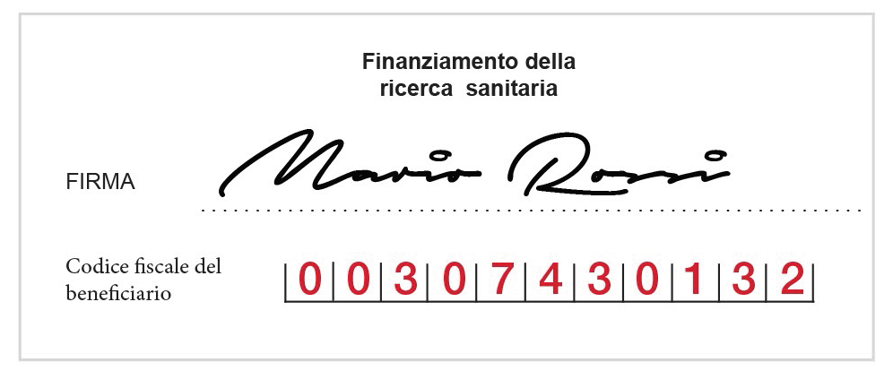 E’ molto semplice: basta una firma e l’indicazione del codice fiscale 00307430132 all’interno dei moduli 730, UNICO (categoria RICERCA SANITARIA) come nell’esempio