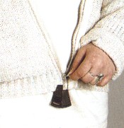 Descrizione: esempio di chiusura di una cerniera con ausilio: viene applicato un peso all'estremità inferiore della cerniera in modo tale da poter utilizzare una sola mano per la chiusura.